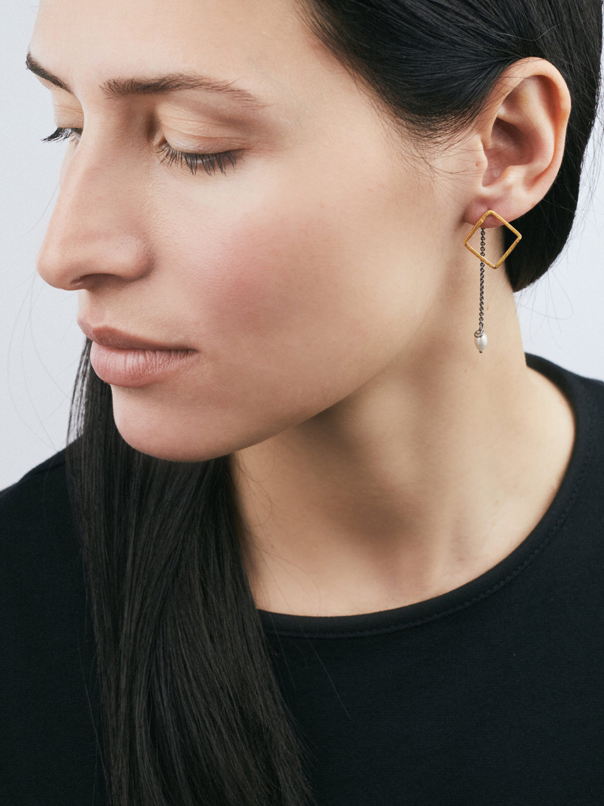 HANDMADE EARRINGS WITH A GOLD PLATED & OXIDIZED FINISH